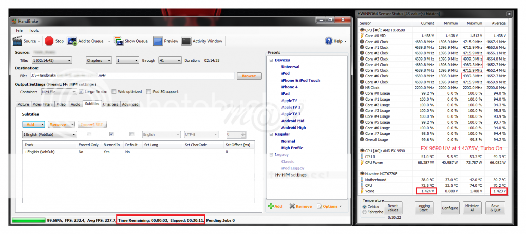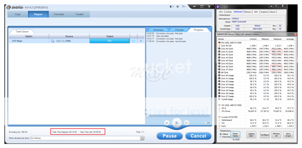 Što se tiče konkretnog pitanja iz teme, FX-9590 nije dobra kupovina, jer je i na tim klokovima naponska, pa čak i na vrhunskim pločama u izvedbi Asusa (CVF, Sabertooth) konstantno, agresivno angažovana, kad god je CPU u većem procentu upošljen. Isto važi za FX-8350, koji, doduše, zbog znatno niže cene, ima prednost u odnosu na i7 prilikom kupovine, za manje zahtevne korisnike, što se ne može reći za FX-9590, koji i pored navedenih nedostataka i približno iste cene kao i7, nema šta da da traži u konkurenciji sa drugim.